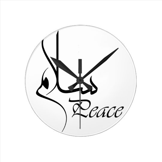 Horloge Ronde Paix Noire Avec La Calligraphie Arabe Salam Zazzle Fr