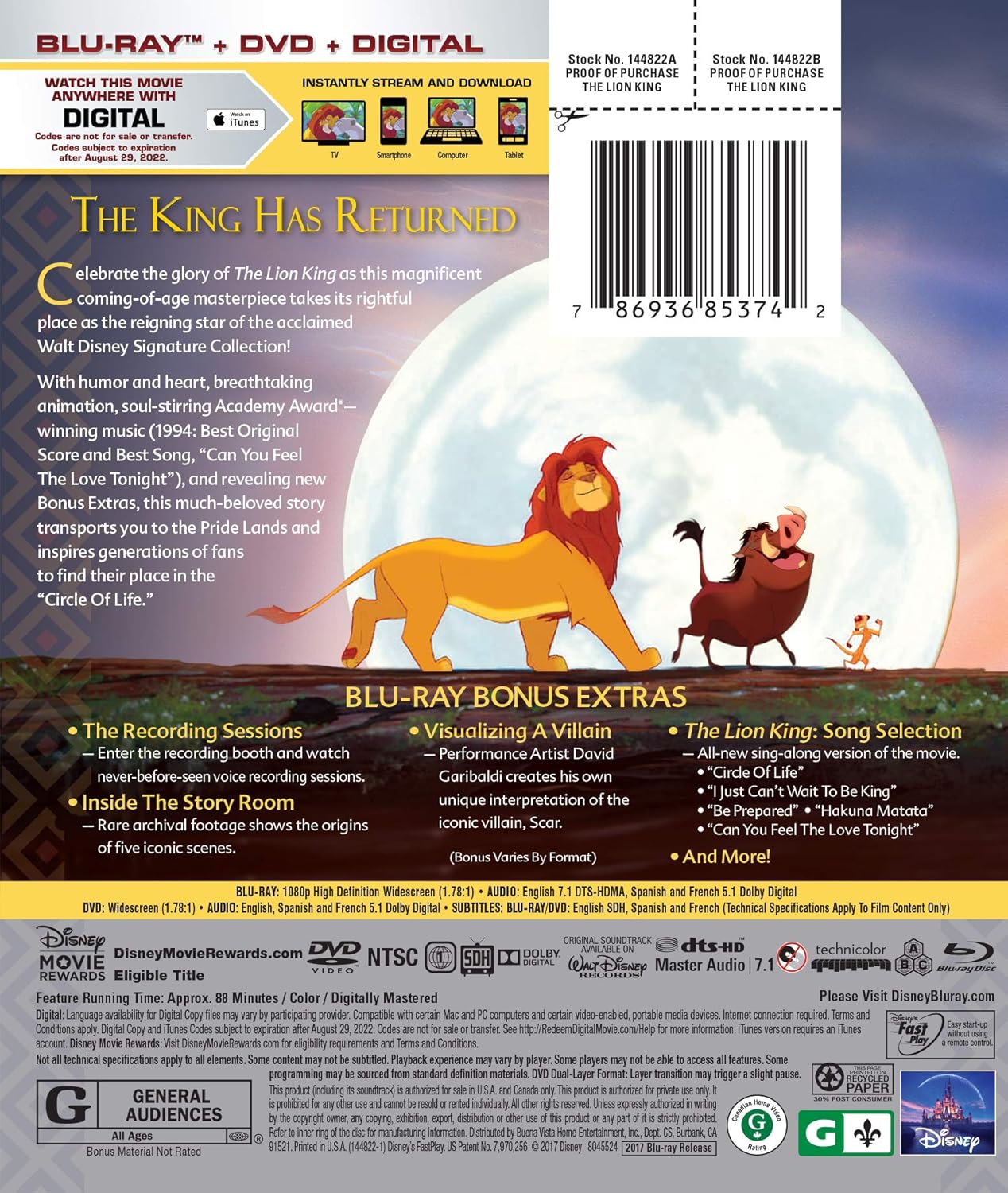 The Lion King The Walt Disney Signature Collection Include Digital Copy Blu Ray Dvd 17 1994 Best Buy