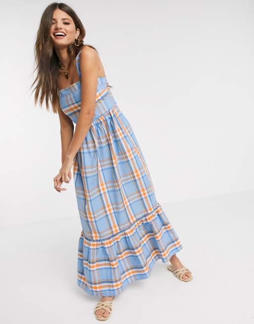 Y A S Robe Longue D Ete A Carreaux Bleu Asos