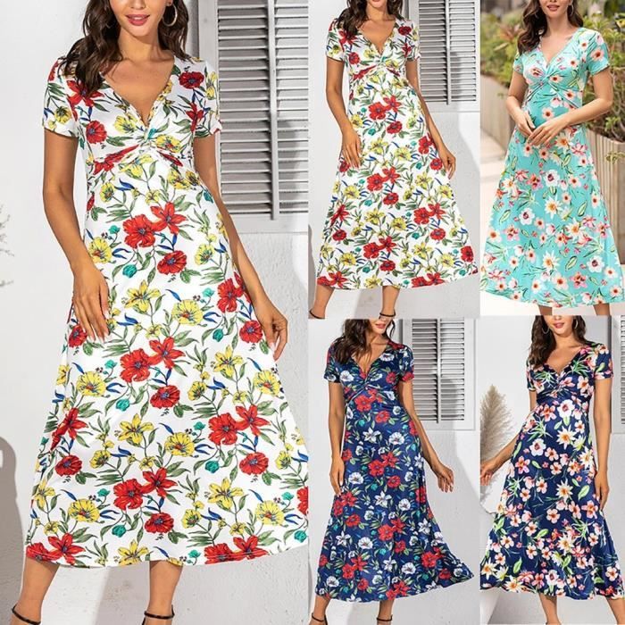 Robe Longue Boho Femmes De Vacances D Ete Floral Maxi Kaftan Robe Col En V Long Beach Sun Robes Rouge Rouge Achat Vente Robe Soldes Sur Cdiscount Des Le Janvier Cdiscount