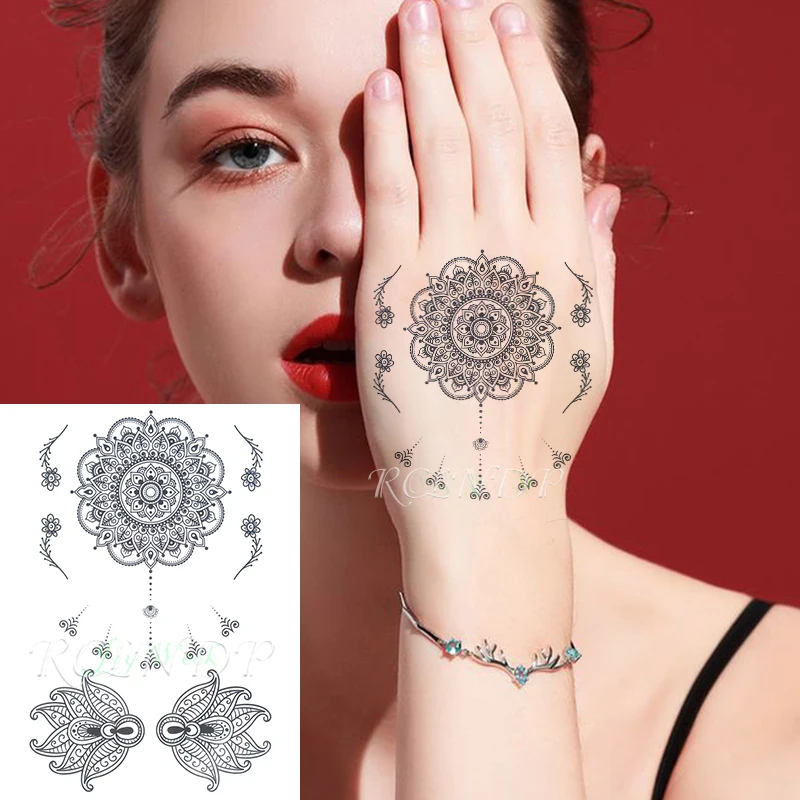 25 Styles Non Toxic Women Henna Tattoo Black Fake Lotus Mandala Flower Body Arm Art Waterproof Temporary Tattoo Stickers Hbj040 Sticker Toyota Stickers Nursesticker Shapes Aliexpress