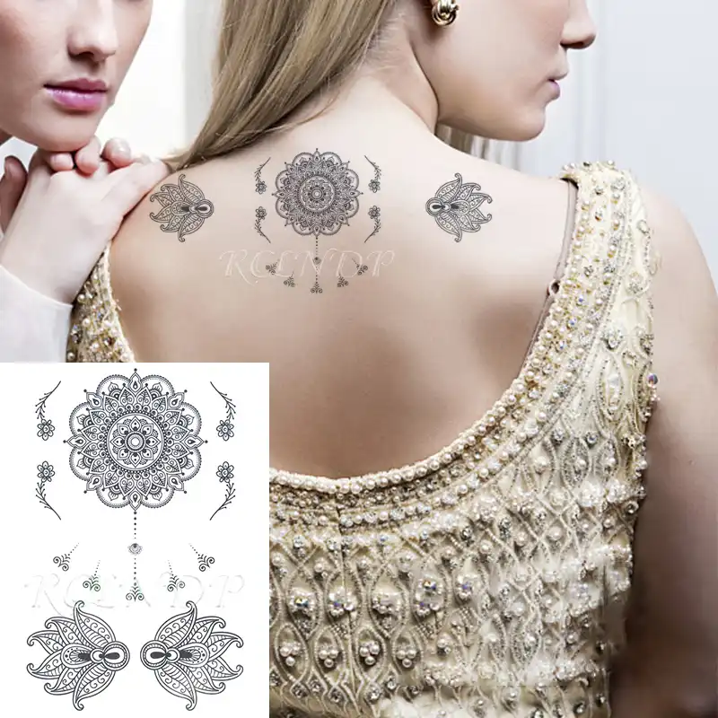 Autocollant De Tatouage Temporaire Impermeable Fleur Lotus Mandala Henne Mehndi Tatto Autocollants Flash Tatoo Faux Tatouages Pour Fille Femmes 7 Aliexpress