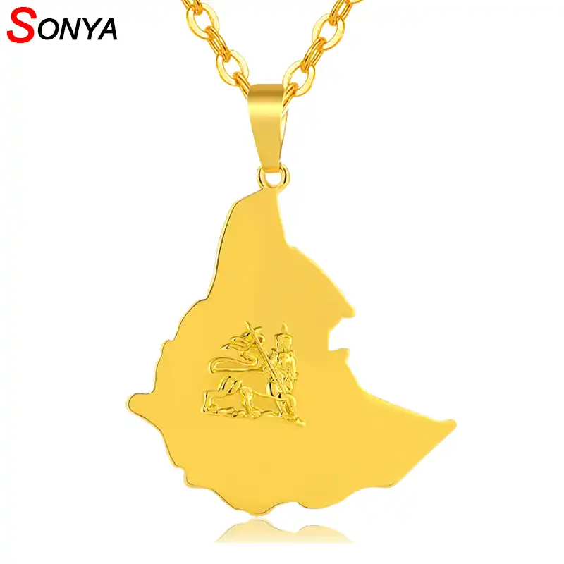 Sonya Carte Ethiopienne Colliers Femmes Hommes Or Couleur Bijoux Afrique Ethiopie Lion Collier Cartes Cadeau Bijoux Femme Aliexpress