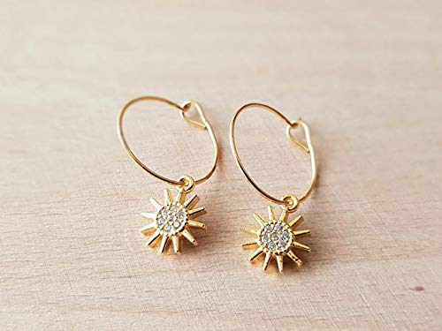 Mini Creoles Breloque Soleil Zircon Cz Cadeau Bijoux Femme Amazon Fr Handmade