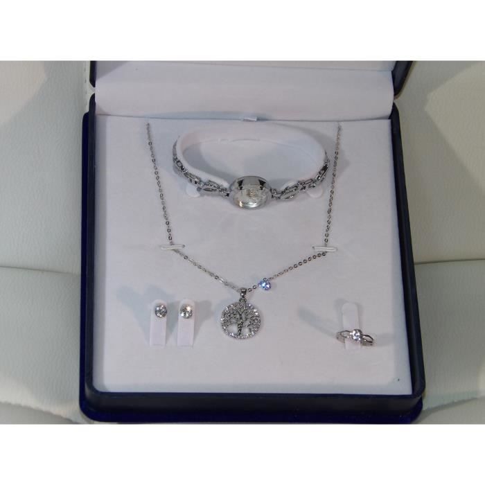 Coffret Cadeau Montre Femme Parure De Bijoux Collier Bague Boucles D Oreilles Bracelet Amazon Fr Montres