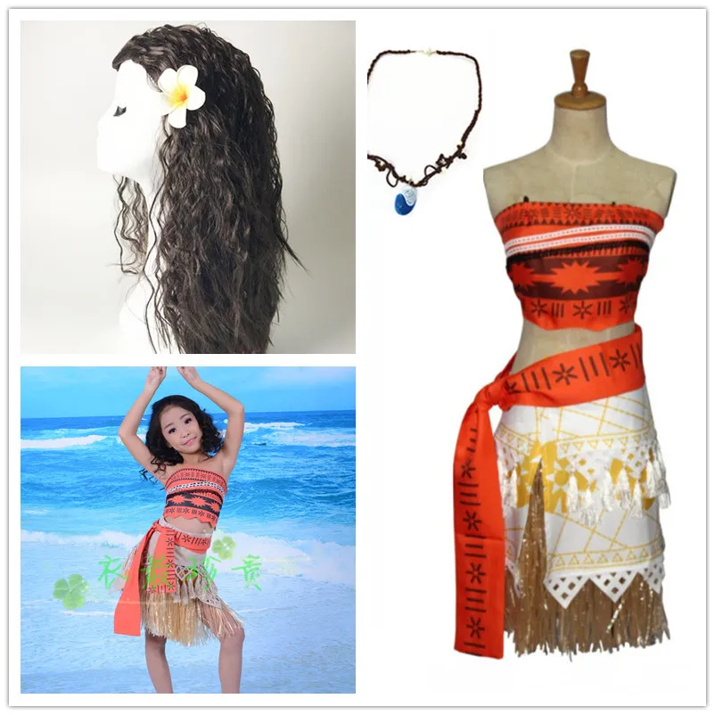 Halloween Fille Enfant Princesse Moana Costume Enfants Deguisement Cosplay Fete Costume Avec Collier Fille Moana Perruque Aliexpress