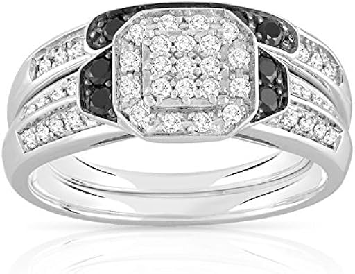 Maty T51 Bague Et Alliance Demi Tour 750 Or Blanc Diamant Blanc Et Noir Taille 51 Amazon Fr Bijoux