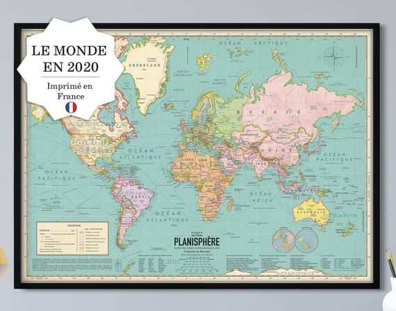 Planisphère du monde en français Des planisphères qui ont l'originalité d'être centrés sur le Pacifique Cartes du monde physique Des cartes du monde qui mettent en valeur le relief ou la végétation Cartes du monde politique Des cartes du monde qui identifient les différents pays Cartes en français. Les prix pour ce planisphère sont liés aux dimensions, veuillez sélectionner les dimensions souhaitées cidessous Planisphère disponible uniquement en vieux français Carte du monde Planisphere acheter Carte du monde au prix de 52€ Taille 68,5x84cm Papier 250g légèrement texturé Accroche par 2 œillets métalliques. Miroir planisphère carte du monde Fabrication française Ce miroir original est en verre acrylique Il est beau et pratique pour décorer votre bureai, votre chambre avec élégance Ce miroir carte du monde est proposé en 5 dimensions selon l'espace et le style que vous souhaitez donner.