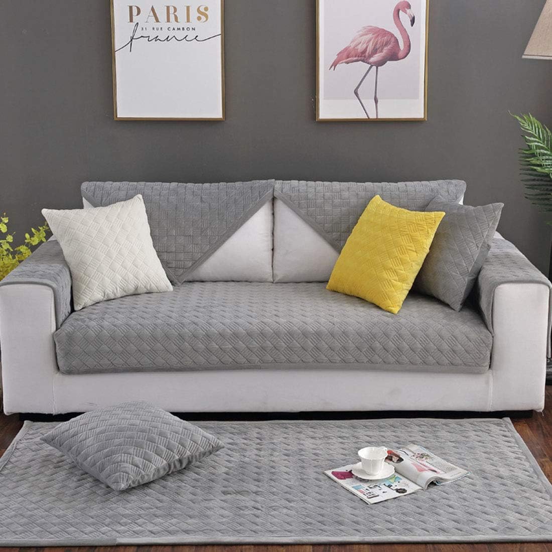 Yuena Care Housse Canape Plaid Antiderapant Matelasse Protege De Canape Couverture De Fauteuil Hiver Protecteur Pour Enfant Et Animaux Domestique En Velours Modele A Gris 70 90cm Amazon Fr Cuisine Maison