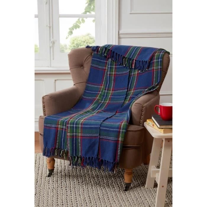 Tartan Motif A Carreaux Plaid Pour Canape Fauteuil Lit Coton Bleu Achat Vente Couverture Plaid Soldes Sur Cdiscount Des Le Janvier Cdiscount