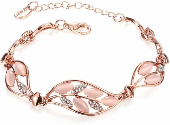 Mes Bijoux Bracelets Bracelet Charms Et Perle Opale Plaque Or Rose 750 000 18ct Cadeau Femme Bijou Fantaisie Haut De Gamme Opale Strass Feuilles Rose Wz B0493 Amazon Fr Bijoux
