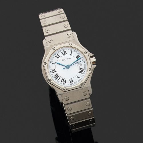 Montre Cartier Homme Santos Octogonale En Acier Automatique Vers 1985