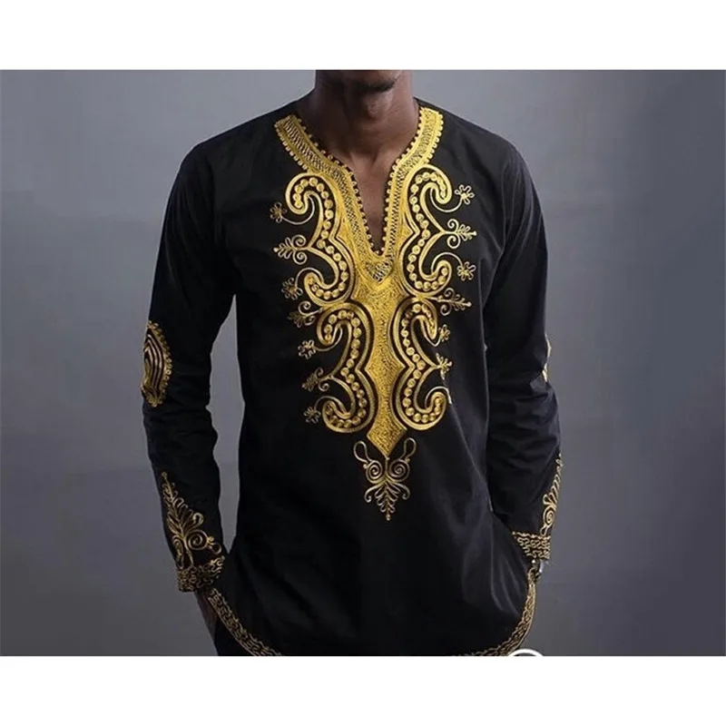 19 Nouveaux Hommes Africains T Shirt Bazin Imprime Or Noir A Manches Longues Afrique Traditionnel Culturel Vetements De Sport Pour Homme T Shirt Aliexpress