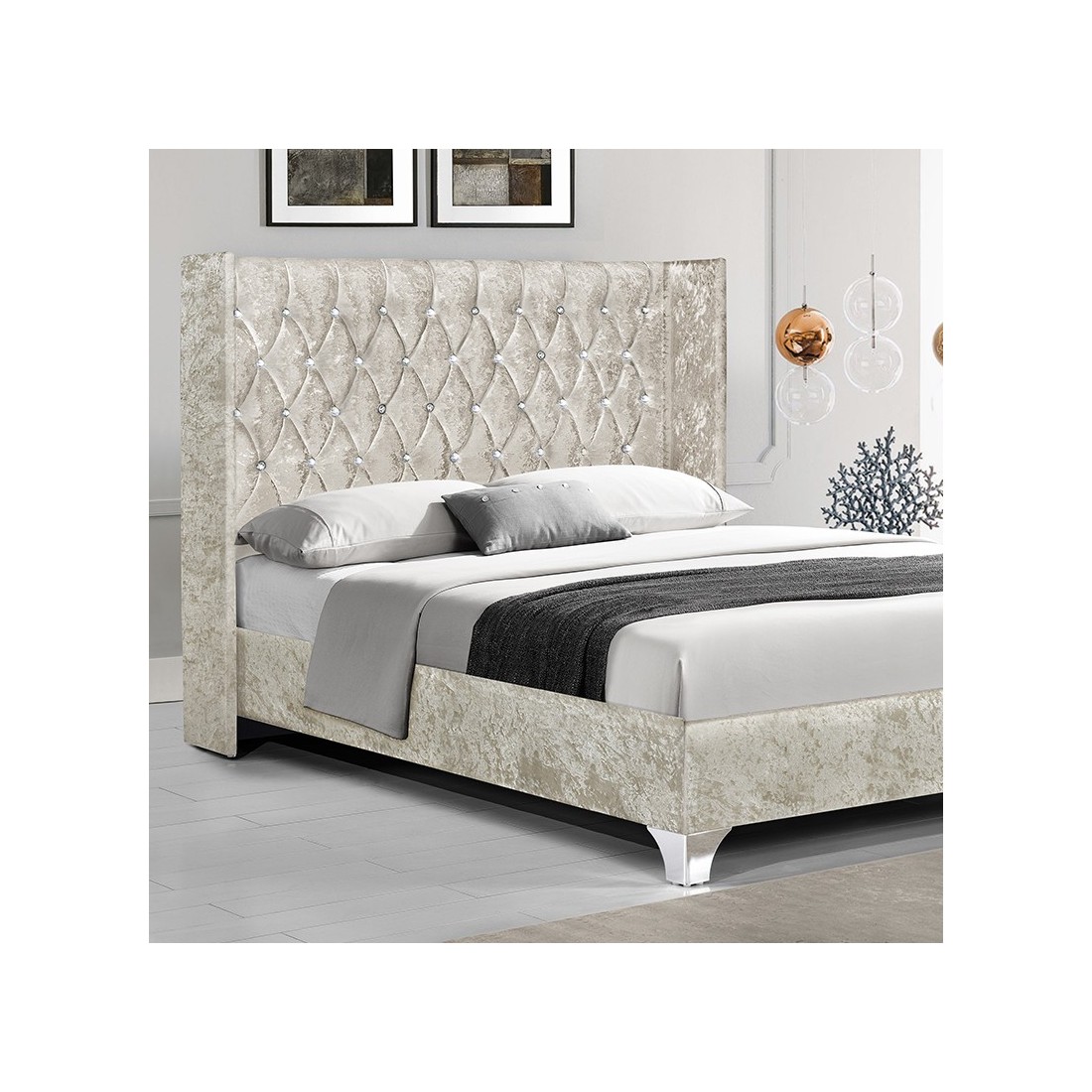 Lit Capitonne Velours Baronne