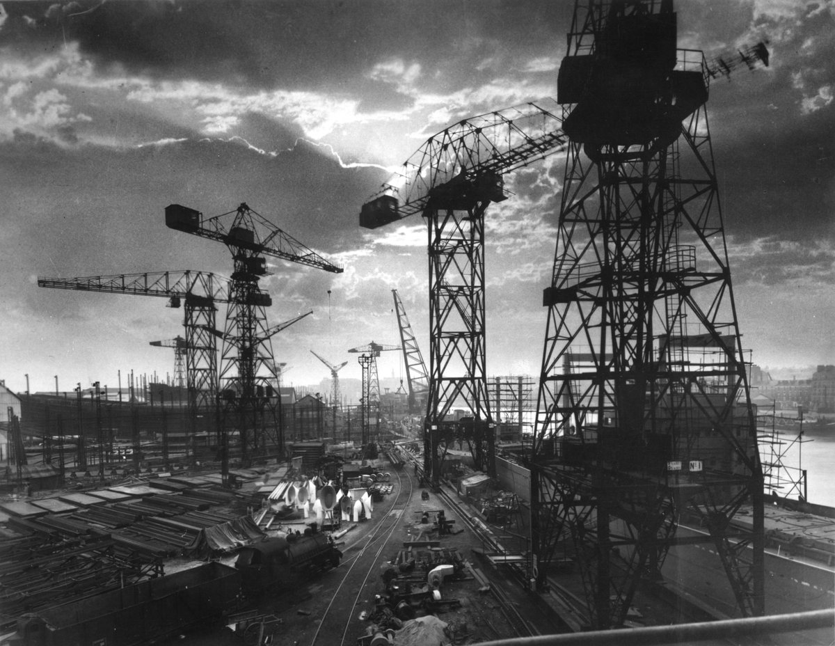 Stephane Pajot Sur L Ile De Nantes Ici La Grue Titan La Jaune Bien Entouree Fin Des Annees 1950 On Apercoit Le Dome De Notre Dame De Bon Port Le Quai