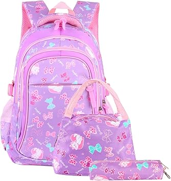 Vbiger Cartable Fille Primaire 3 En 1 Sac A Dos Enfant Scolaire En Nylon Impermeable Pourpre Amazon Fr Bagages