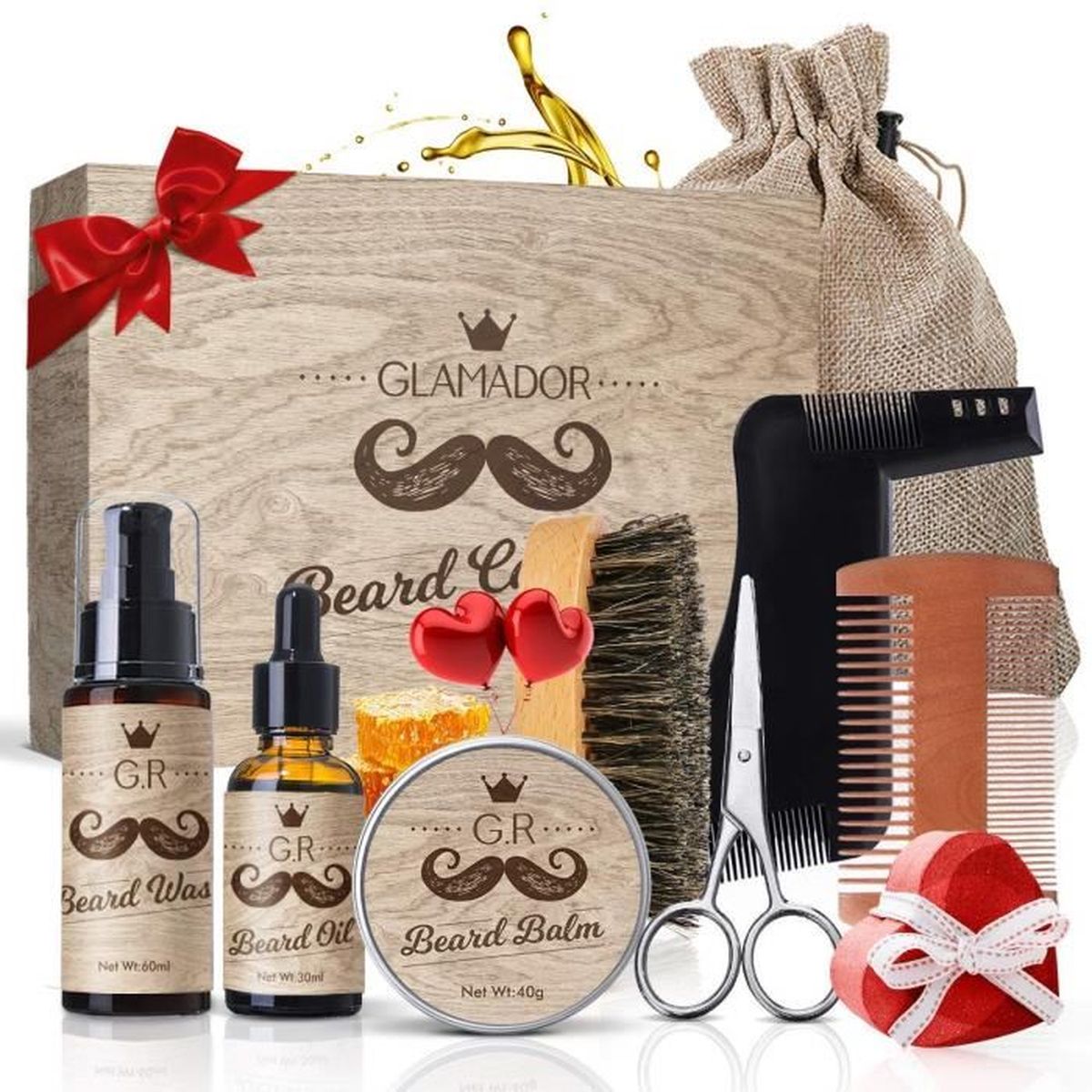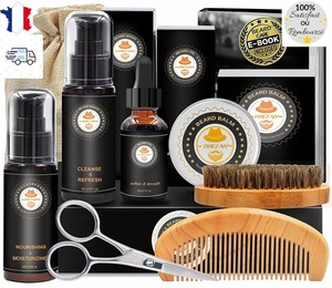 Coffret Cadeau Homme Kit A Barbe 8 Pieces Lot Soin Entretien Complet Huile Beaume Saint Valentin Peigne Ciseau Pochoir Brosse Papa Achat Vente Mousse A Raser Gel Coffret Cadeau