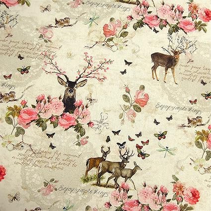 Tissu D Ameublement En 100 Coton Avec Aspect Lin Motif De Cerfs Et De Roses 0 5 M Largeur 140 Cm Vendu Au Metre Amazon Fr Cuisine Maison