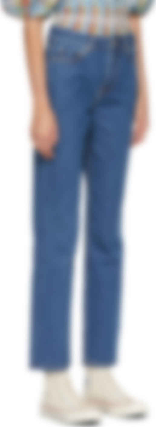 Jean A Taille Haute En Denim Bleu Basic Ganni En Solde