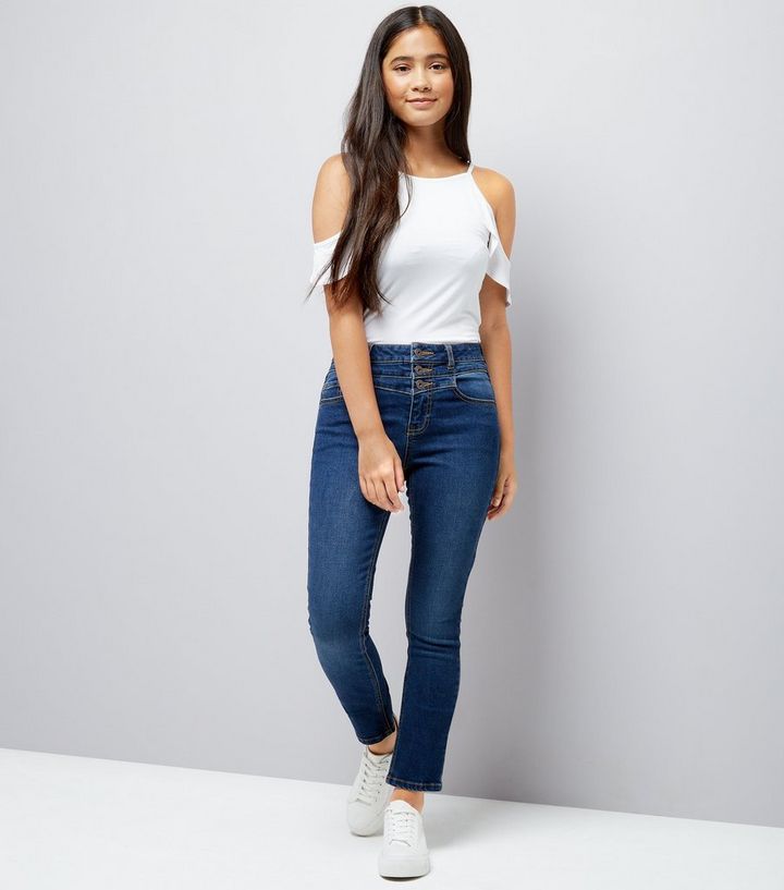 Girls Jean Bleu Marine Taille Haute New Look