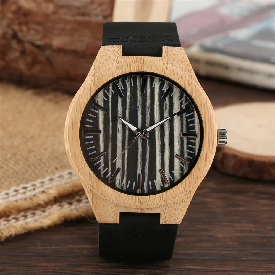 Creative Noir Rayure Bois Hommes Montre Analogique En Cuir Bracelet Montre Bracelet Top Cadeaux Pour Homme Ultra Leger Bambou Horloge Reloj Aliexpress