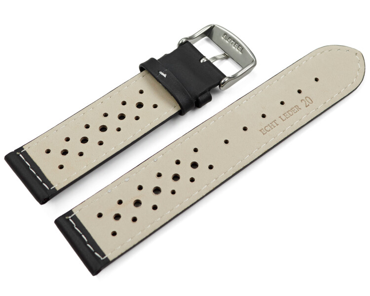 Rallye Racing Bracelet De Montre De Mm En Cuir Veritable Avec Trous Et Coutures Blanches Amazon Fr Montres