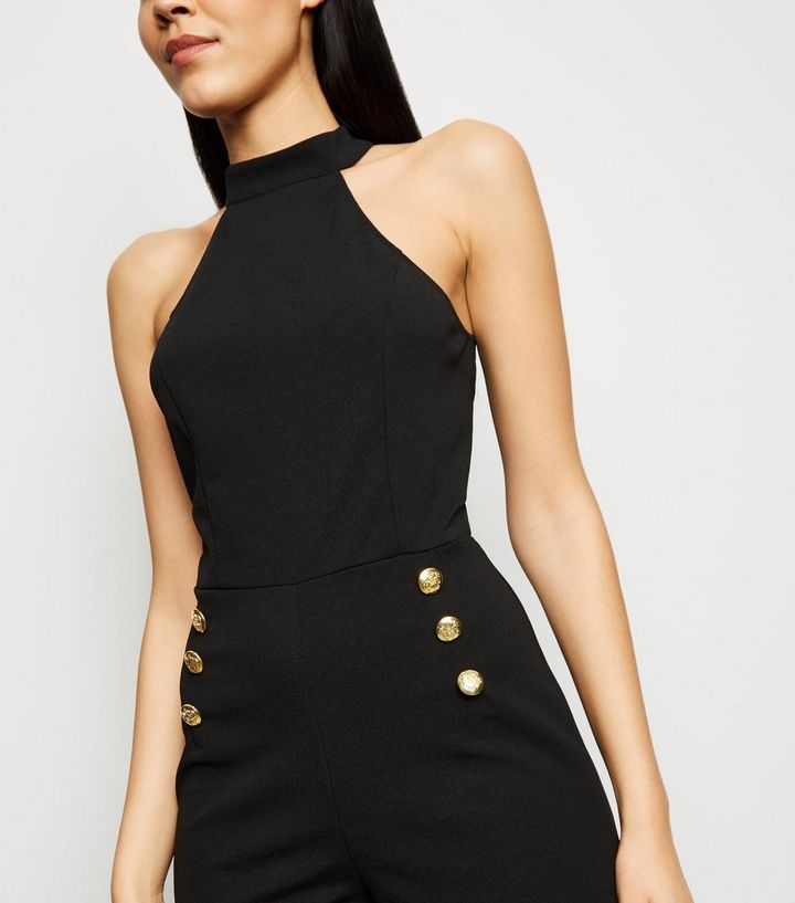 Ax Paris Combinaison Noire A Col Effet Dos Nu New Look