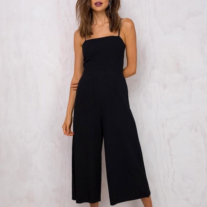 Combinaison Bretelles Bretelle Dos Nu Une Piece Large Jambe Longue Noir Combinaisons Bas