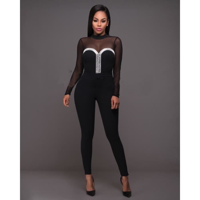 Noir Combinaison Femme Manche Longue Elegante De Soiree Bustier Strass Tulle Dos Nu Sexy De Club Transparent Grande Taille S Xl Noir Achat Vente Combinaison Soldes Sur Cdiscount Des Le