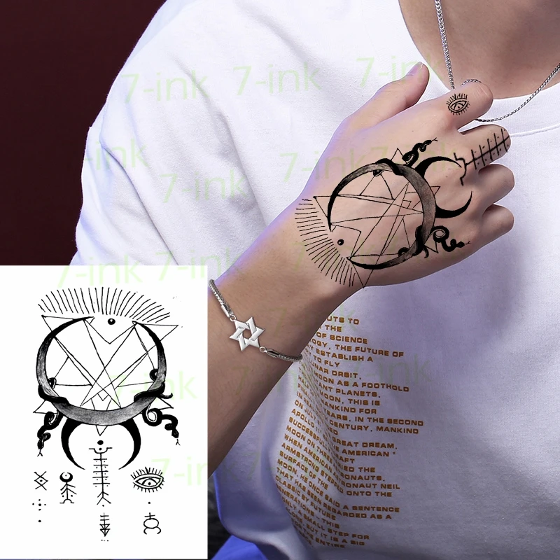 Autocollant De Tatouage Temporaire Impermeable A L Eau Lune Serpent Poisson Oeil D Os Sur Le Dos De La Main Flash Tatoo Faux Tatouages Pour Hommes Femmes Aliexpress