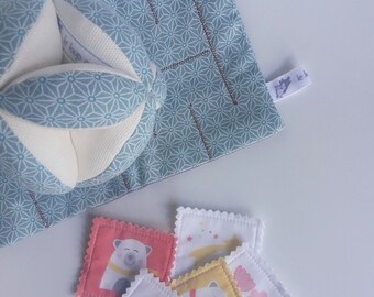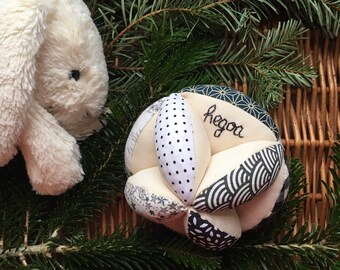 Sur Commande Ensemble Balle De Prehension Montessori Et Doudou Lapin Tissu Japonais Motifs Vagues Balle De Prehension Montessori Balle De Prehension Doudou