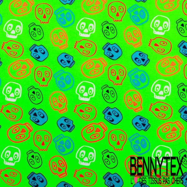 Jersey Coton Imprime Tete De Mort Rigolotte Fluo Fond Vert Fluo Bennytex Vente De Tissus Pas Cher Au Metre