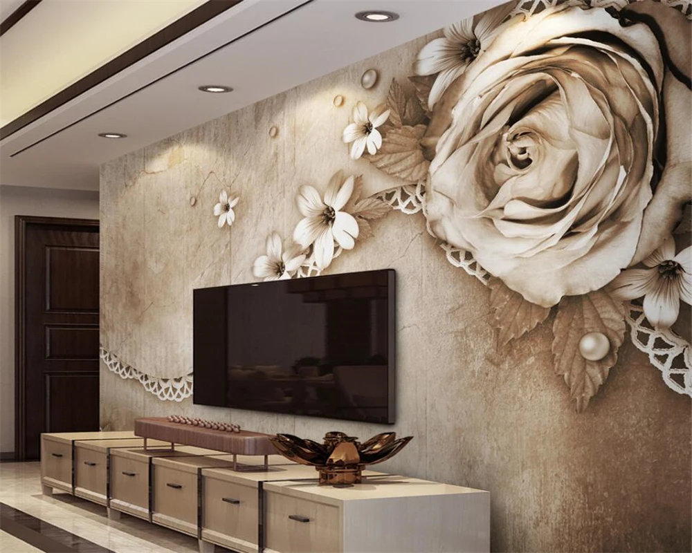 Papier Peint 3d Personnalise En Dentelle Rose 3 D Grand Papier Peint Pour Decoration De La Maison Decoration De Salon Aliexpress