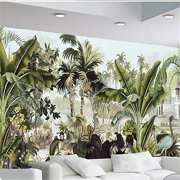 Lanyu Papier Peint Design D Interieur Minimaliste Moderne Papier Peint Decoratif Papier Peint 3d Photo Murale Arbre De Noix De Coco Vert Plante Tropicale Peinture A L Huile Fond Amazon Fr Cuisine Maison