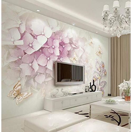 Papier Peint Personnalise Decoratif A La Maison 3d Violet Hydrangea Cristal Bijoux Feuille Papillon Tv Mur Peintures Murgo Achat Vente Papier Peint Papier Peint Personnalise Cdiscount
