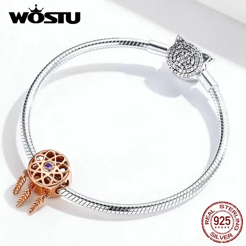 Wostu Bracelet En Argent Sterling 100 925 Bijoux Originaux En Or Rose Attrapeurs De Reves Breloques Adaptees Aliexpress