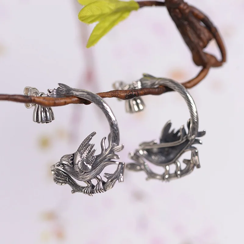 Fnj Pica Pica Boucles D Oreilles En Argent 925 Bijoux Originaux En Argent Sterling Pur S925 Arbre D Oiseau Pour Femmes Aliexpress