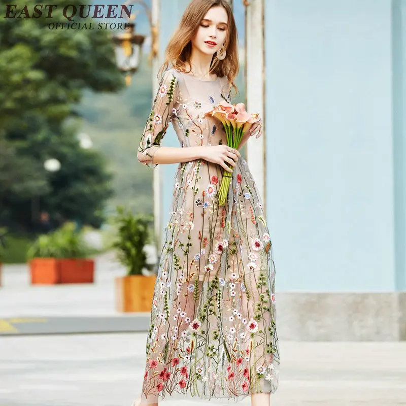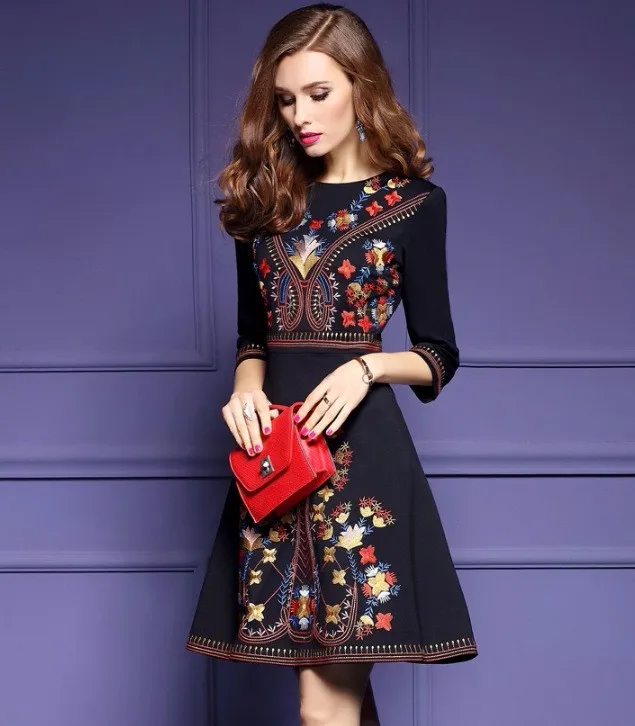 Nouveaux Produits 17 Ethnique Chic Carriere Vetements Retro 3 4 Manches Slim Fit Flare Robe De Bal Longueur Au Genou Brode Femmes Robe Buy Robes Modestes Au Genou Robes De Cocktail Elegantes Au