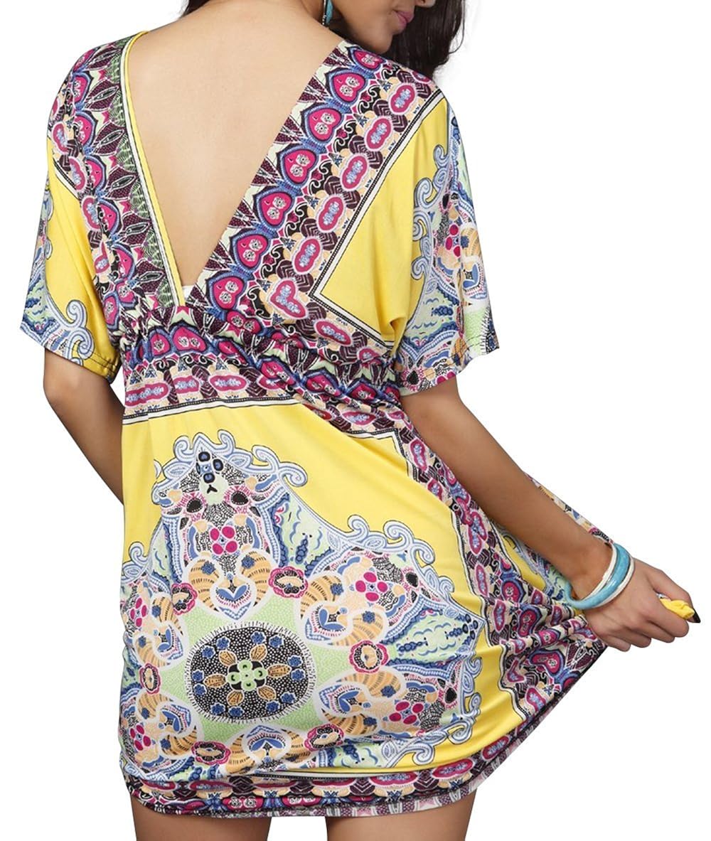 Lanodove Robe Boheme Courte Fleur Tunique Blouse Manches Chauve Souris Col En V Ethnique Chic Robe De Plage Ete Femme Vetements De Sport Sports Et Loisirs