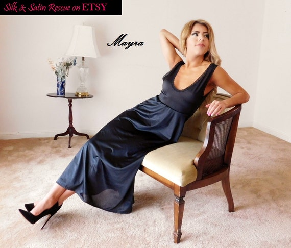 Vintage Vanity Fair Black Nylon Nightgown Nightdress Negligee Etsy