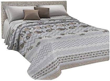 Ciranocasa Couvre Lit Printemps Ete Pour Lit 1 Place Et Demie 2 X 280 Cm Poissons Beige 1 Taie D Oreiller Unie En Coton Pique Jacquard Fabrique En Italie Amazon Fr Cuisine Maison