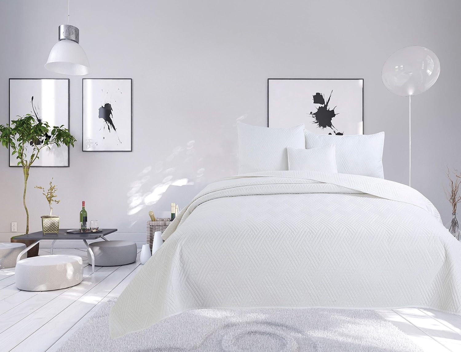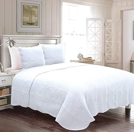 Univers Decor Couvre Lit Boutis Uni Piquage Vagues 100 Coton Pour Lit 1 Place 180 X 240 Cm Pour Lit 1 Place Blanc Linge De Lit Et Oreillers Literie Et Linge De Maison