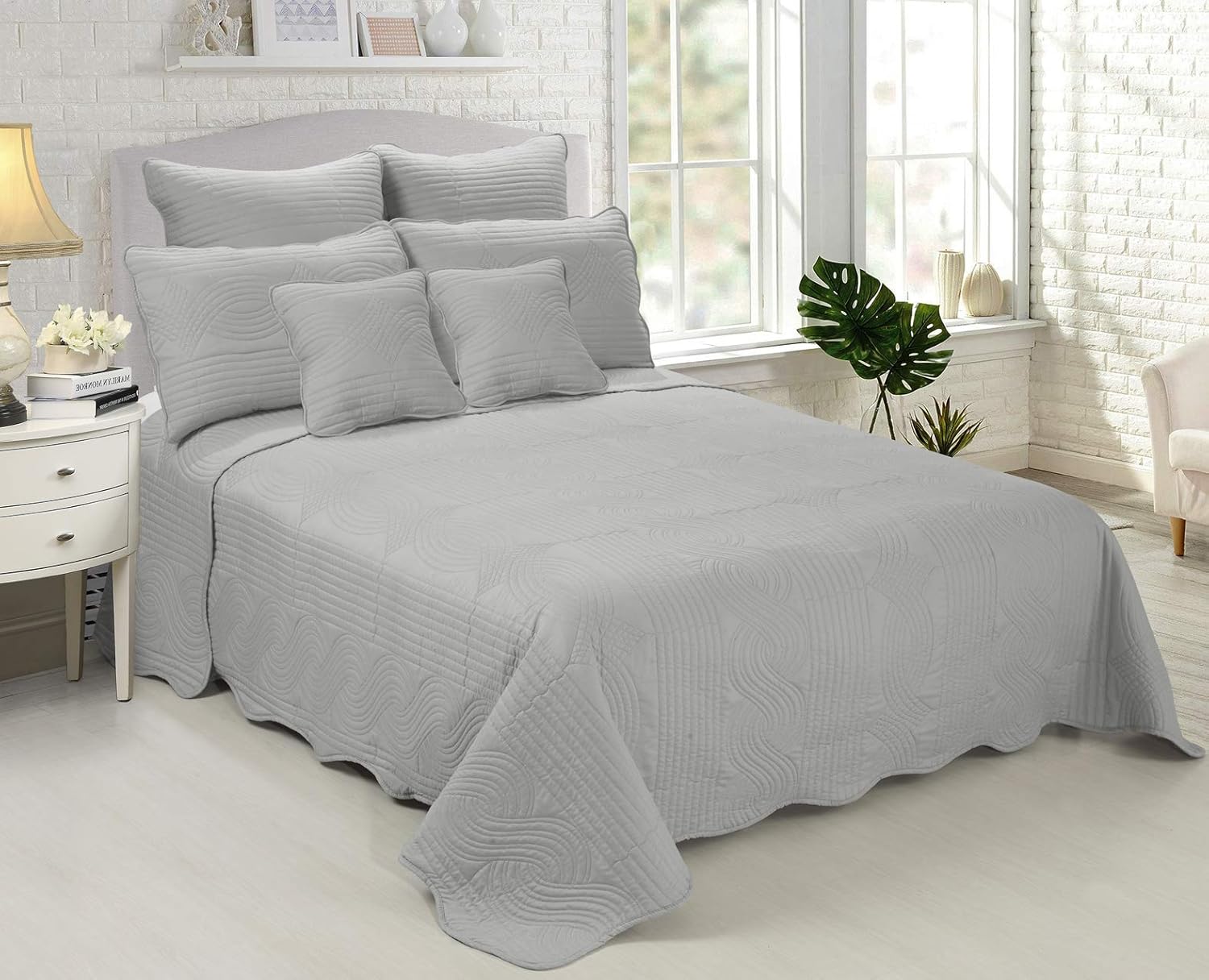 Univers Decor Couvre Lit Boutis Piquage Vagues 4 Pieces Pour Lit 1 Place Silver 180 X 240 Cm Pour Lit 1 Place Linge De Lit Et Oreillers Couvertures Plaids Et Boutis