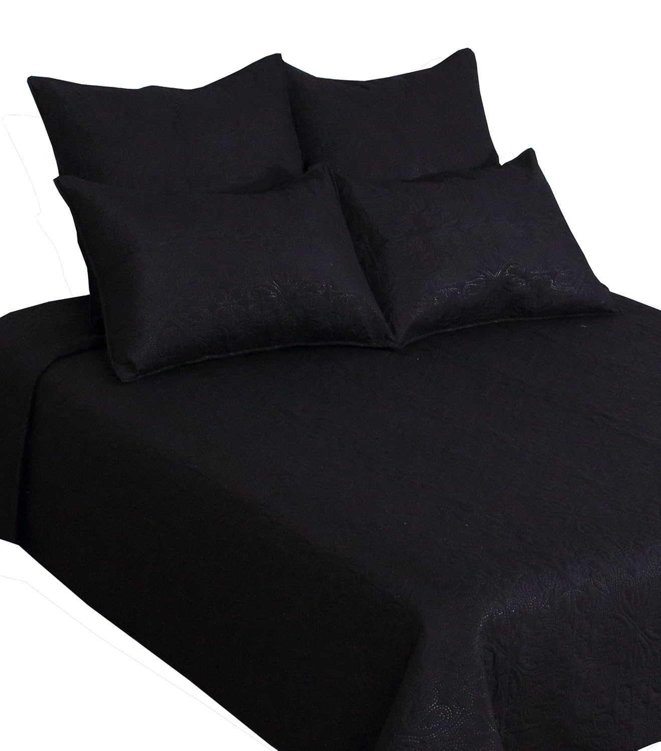 Univers Decor Couvre Lit Boutis Uni 3 Pieces Lit 1 Place Noir Cuisine Maison Ameublement Et Decoration
