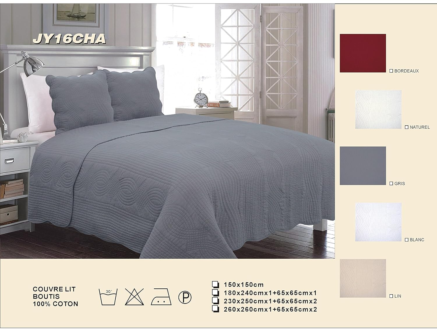Couvrelit Boutis uni 180x2 cm avec 1 taie d'oreiller Vendu par Linge et Maisoncom 29,17. Avec ce magnifique couvrelit Coton Turque 5 Pièces Décorez facilement votre lit dans la plus belle tenue, cet ensemble de couvertures offre un look intemporel et une fixation facile dans des styles traditionnels et contemporains 1 Couverture Coton 180 x 230 cm 1 Cache couette couvre lit 0 x 2 cm 1 Drap plat 240 x 260 cm 2 Taies d'oreiller 70 x. Un lit une place mesure normalement 100 cm de large et 0 cm de long Mais la largeur et la longueur peuvent varier un peu N’oubliez pas que la structure de lit ou le sommier peuvent être plus larges que le matelas Veillez à toujours mesurer avec précaution l’espace dans lequel vous souhaitez placer votre lit et à bien lire les.