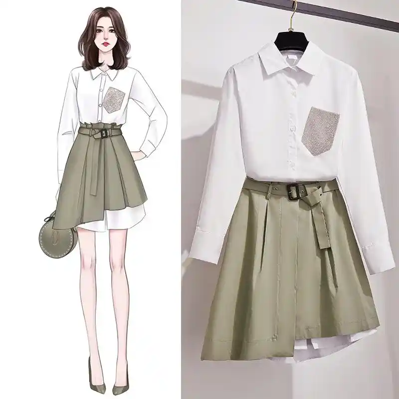 Ichoix Ensemble 2 Pieces Jupe Trapeze Pour Femmes Chemise Blanche Streetwear Cool Tenue Style Coreen Tenue Automne Et Hiver Aliexpress