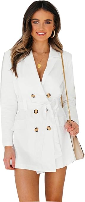 Sijux Femmes Elegant Volant A Double Boutonnage Lady Dress Office Casual Blazer Jupe Blanche Automne Hiver Mince Costume Amazon Fr Vetements Et Accessoires