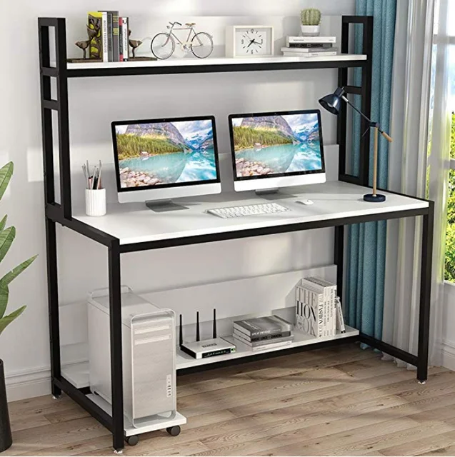 Tangkula Bureau D Ordinateur Tour Pc Avec Grand Bureau Et Etageres 4 Etages Bureau D Etude Polyvalent Station De Tr In Computer Desk Office Workstations Desk