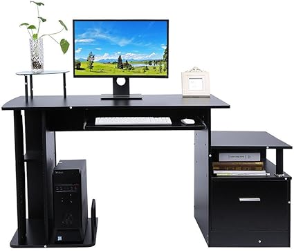 Gototop Grand Bureau Ordinateur Informatique Table Pc Meuble Table De Travail Avec Etagere Et Tiroir En Bois 152x60xcm Noir Amazon Fr Cuisine Maison