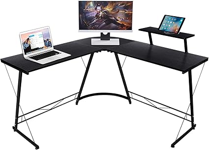 Kuchenks Bureau D Ordinateur Outwin Grand Bureau D Angle En Bois En Forme De L Table D Etude Pour Ordinateur Portable Pour La Maison Et Le Bureau Noir Amazon Fr Cuisine Maison